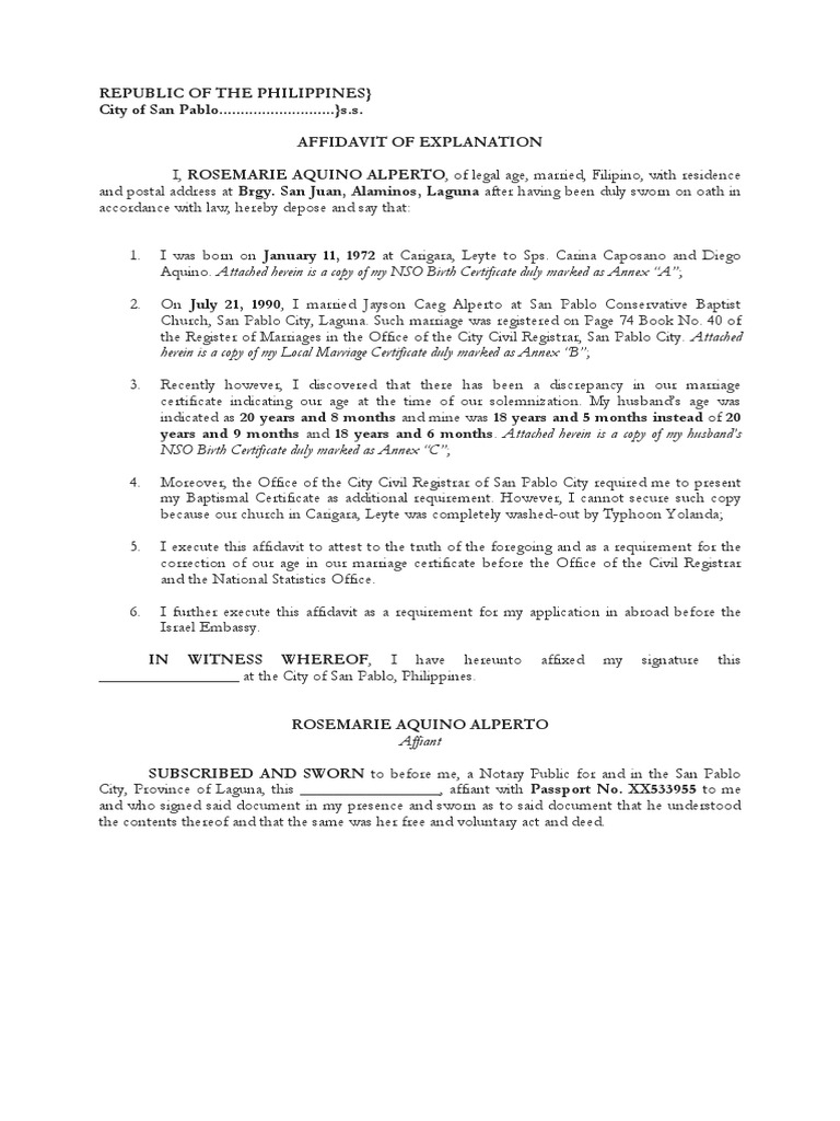 Affidavit Of Explanation Affidavit Notary Public Flood Embankments Explanation