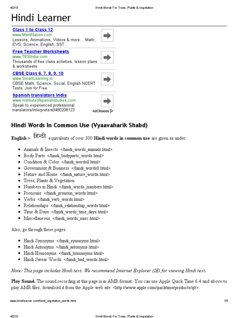 Hindi Words For Trees Plants Vegetation Trees Vegetation Wh Questions Explanation And Exercises
