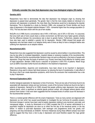 Ao1 Content For Biological Depression Teaching Resources Explanation Of Loading Effect