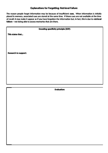 Aqa A Level Psych Memory Retrieval Failure As An Explanation Of Explanation Of I 9 Form