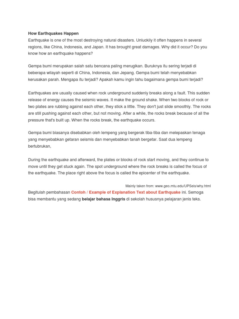 Explanation Text Examples Earthquake, Indeed recently has been hunted by consumers around us, perhaps one of you personally. People now are accustomed to using the internet in gadgets to view video and image information for inspiration, and according to the name of this article I will discuss about