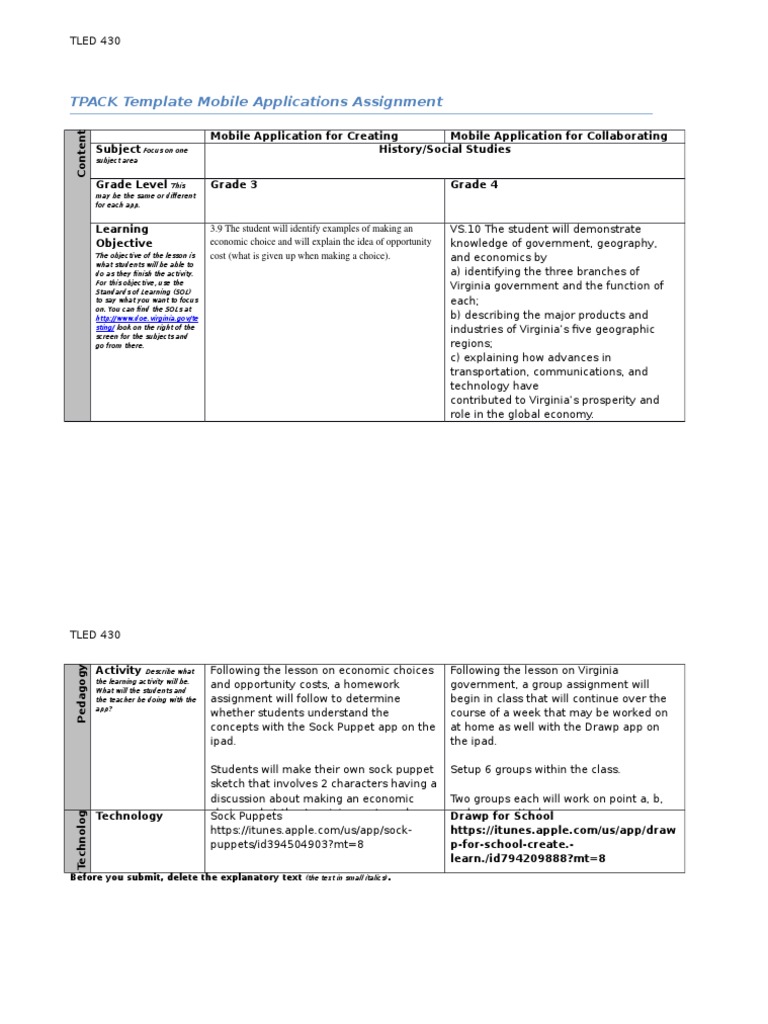 Tpack App Review Template 1 1 Homework Application Software Explain Verbal Description