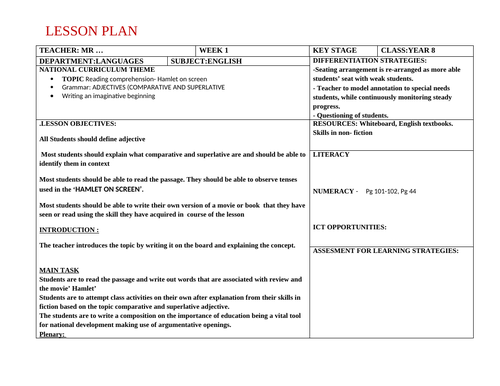 English Language Lesson Plan For Year 8 Teaching Resources Letter Of Explanation For Late Payments On Credit Report